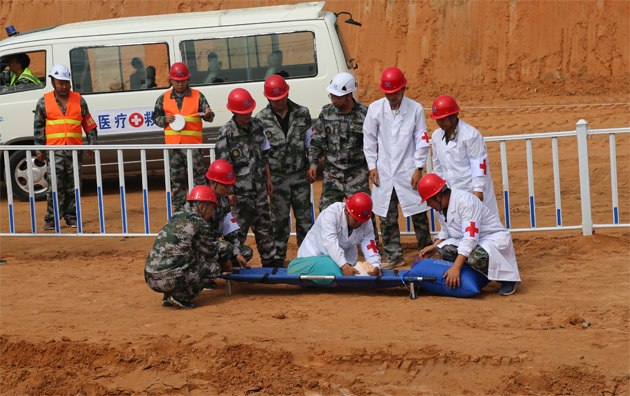 本次應急演練模擬施工現(xiàn)場發(fā)生土方坍塌后的應急救援展開,主要設置了險情報告、應急指揮、啟動預案、現(xiàn)場搶救、緊急疏散、排查危險、醫(yī)療救護、交通疏導、調查取證、維護秩序、善后處理等應急處置場景。演練場景逼真、科目齊全、參演人員精神飽滿、響應快速、處置合理,按照既定預案程序完成了全部演練任務,達到了演練的預期目標,得到了現(xiàn)場觀摩領導的高度評價。